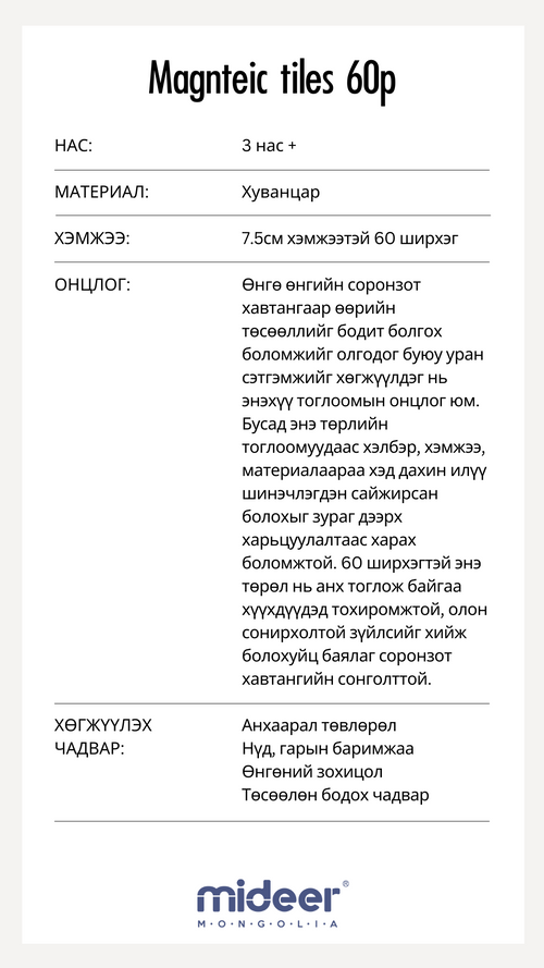 СОРОНЗТОЙ ТОГЛООМ - MAGNETIC TILES 60P